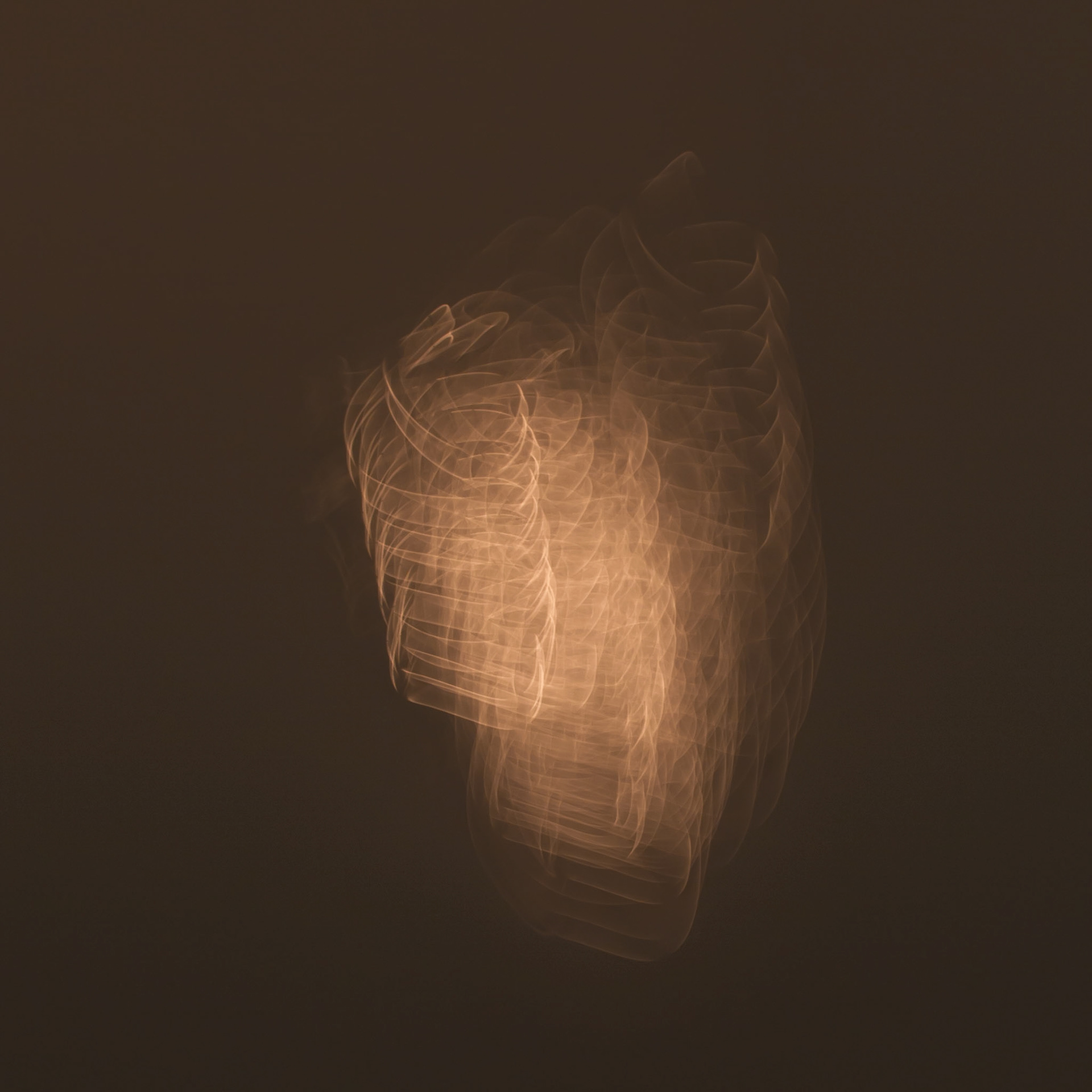 In these works, light is bent to form human ribs. Bones and kernels empathize experiences into colors and shapes of light. The space and time around stops to a black blank square.